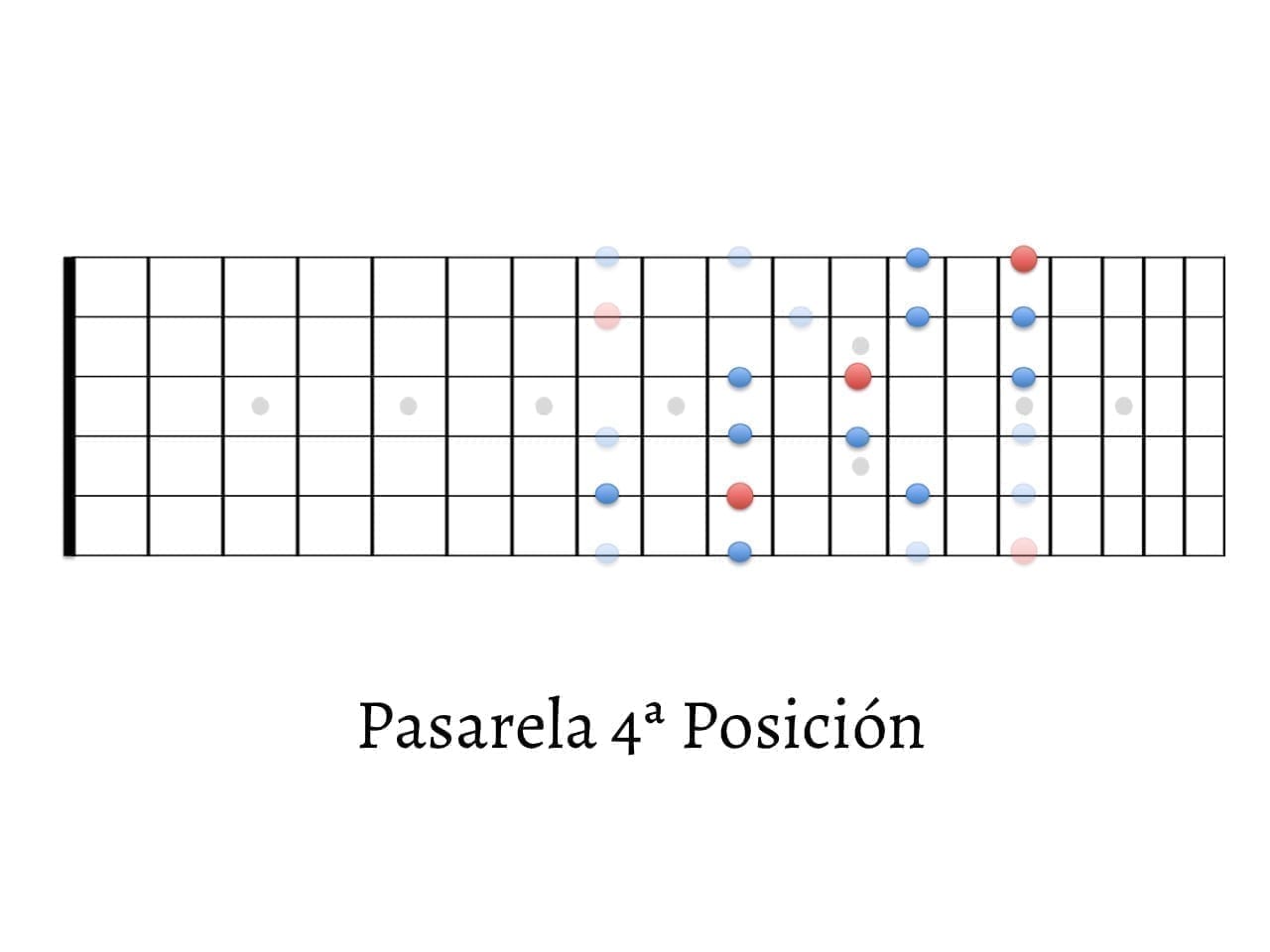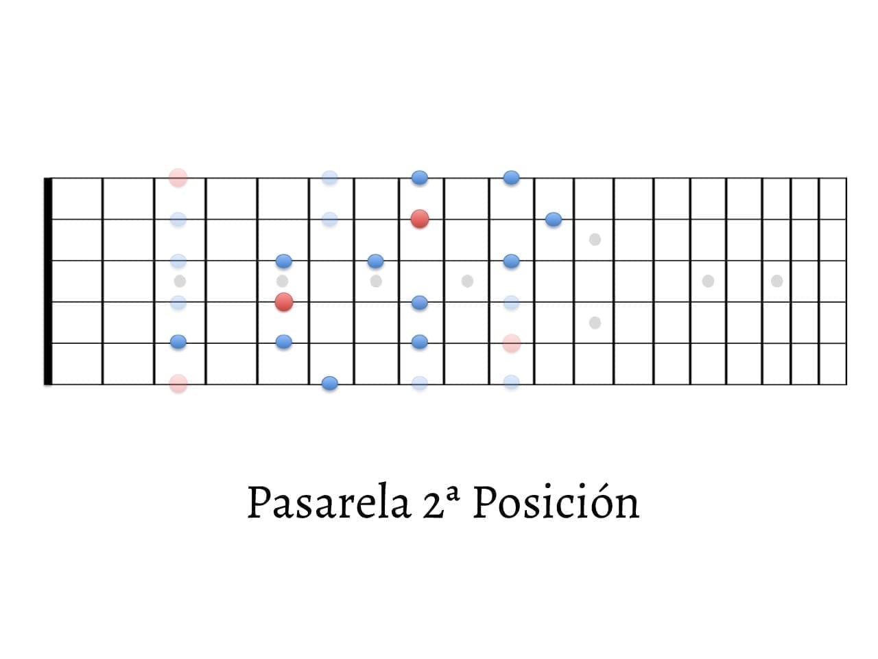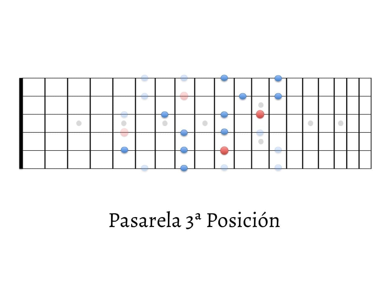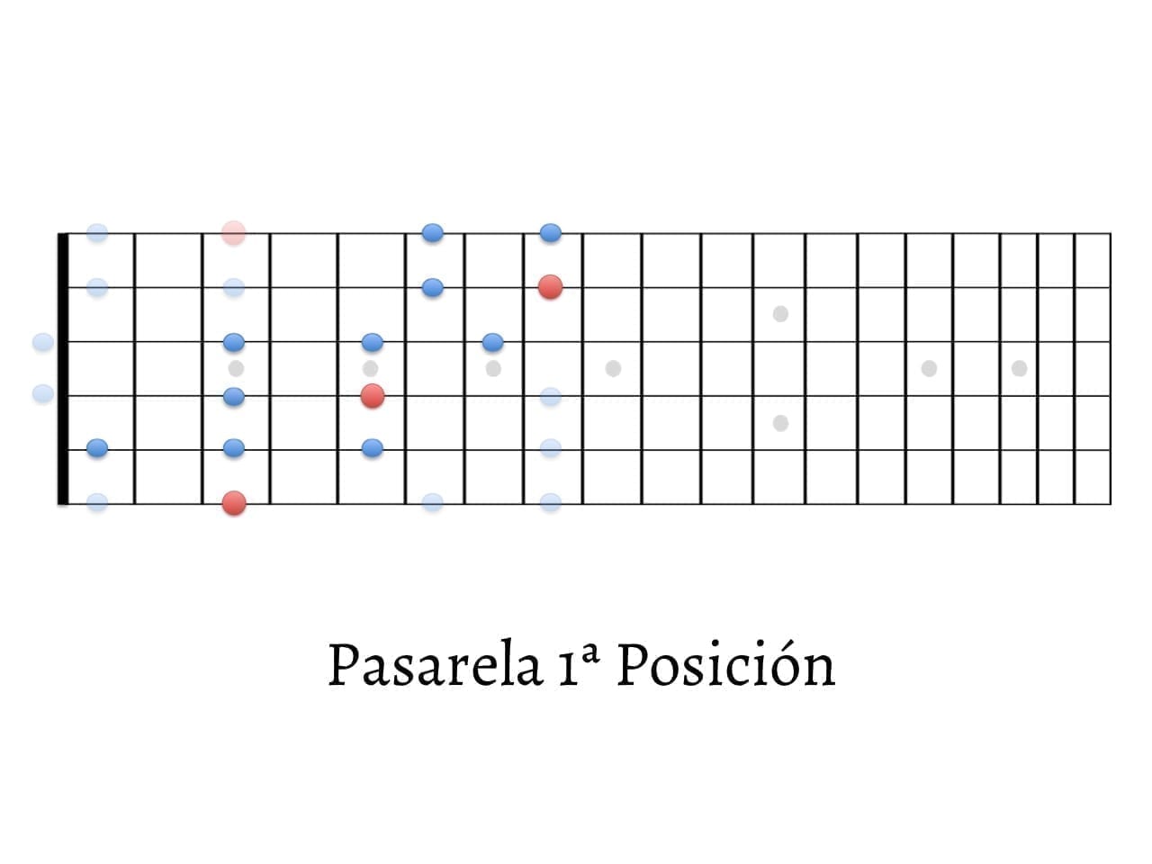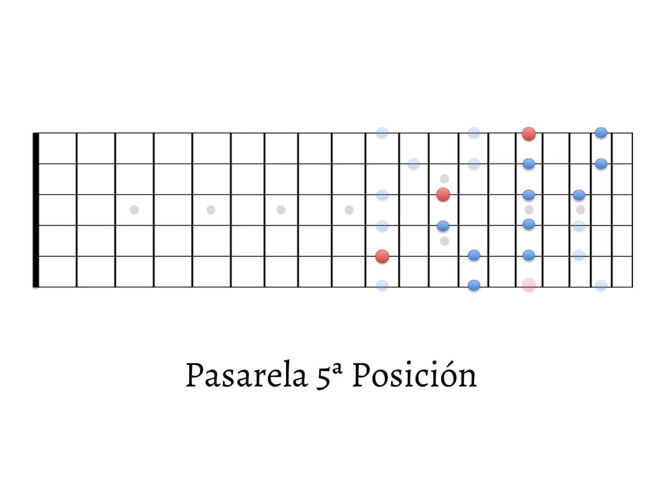 Lo que he hecho en esta ocasión es ordenar cinco nuevas sonoridades —implícitas en la pentatónica menor— utilizando el patrón de digitación que se usa en la ya famosa y muy usada, como yo llamo, pasarela.