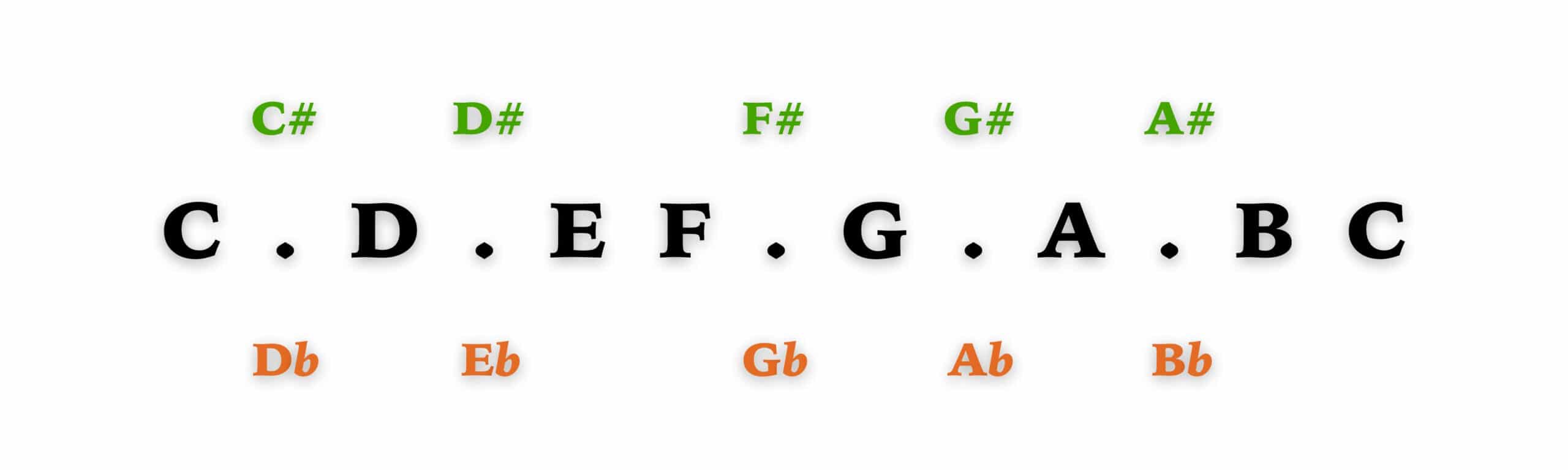 Las notas con # tienen un nombre alternativo cuando se usan en entornos donde se trabaja con bemoles.