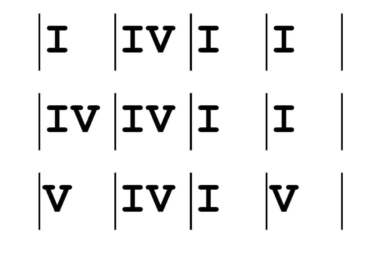 En la estructura típica de Blues mayor, aunque denominamos a los acordes que la forman con los números I, IV y V; realmente no lo son:
