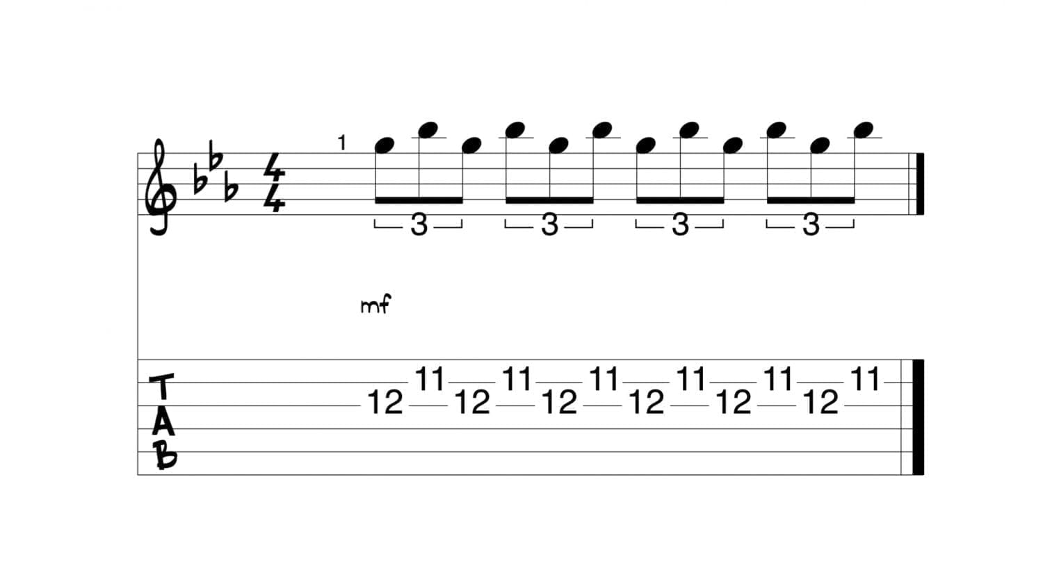 Se trata de tocar una serie de notas que están dispuestas en una combinación rítmica interesante: grupos de dos elementos tomados de tres en tres.
