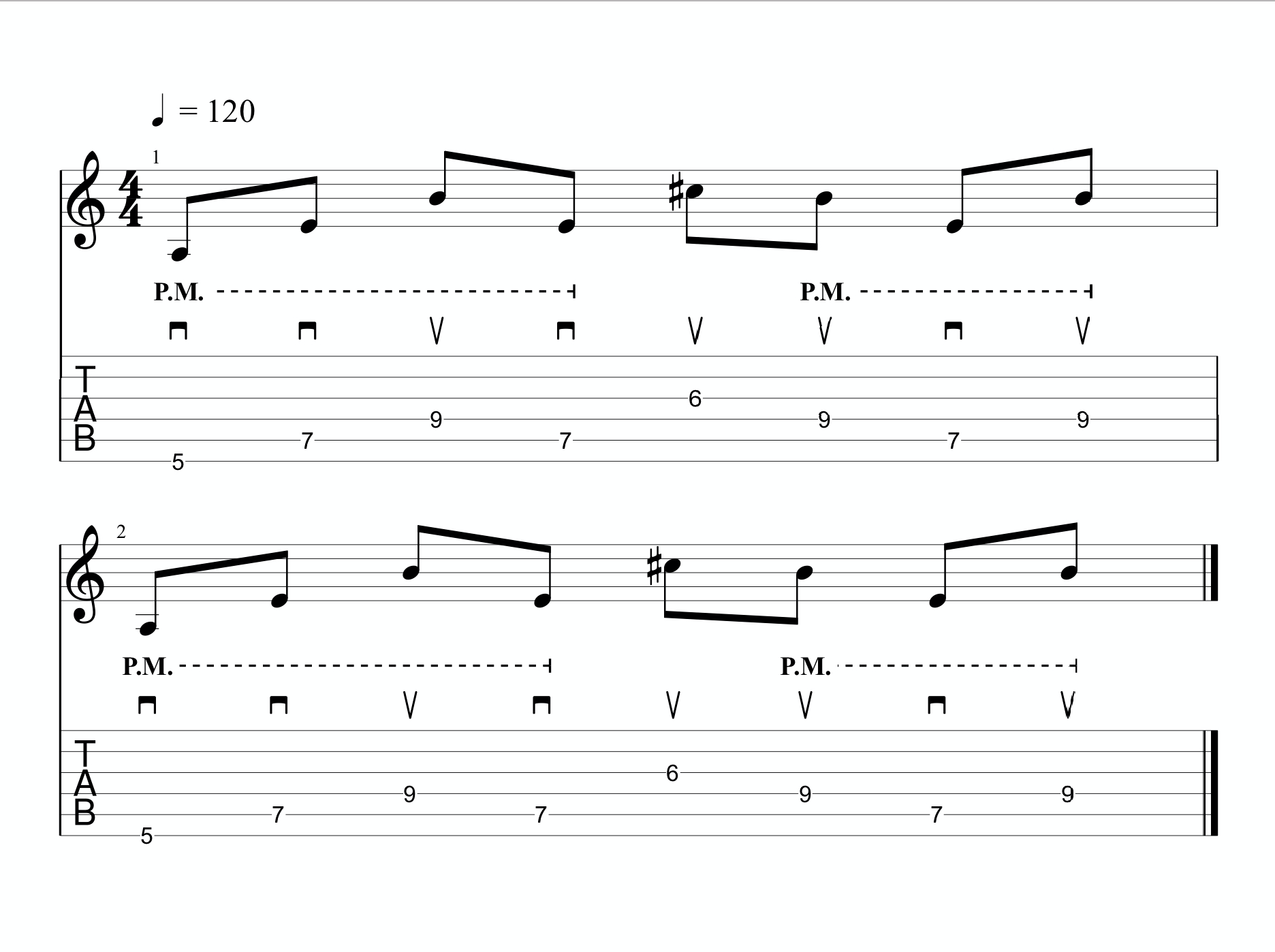 Para que suenen contundentes hay que intentar tocar todos los golpes de púa hacia abajo —down strokes—. Pero para tocar Funky, necesitamos hacer púa contra púa —alternate picking—; o para correr por el camino que marca una escala.